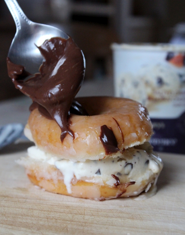 So first thing… you’ll need to decide on an ice cream that has enough character to be placed in a glazed donut. I chose salted caramel and Belgium chocolate from Sainsbury’s Taste the Difference range. The chocolate bits inside also adds to the texture which I think it’s brilliant.