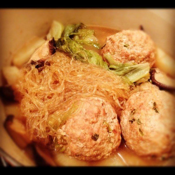 This is a typical Eastern (think Shanghai) Chinese dish. And don’t be alarmed. It does NOT contain traces of lions. It really is just a fancy name for oversized meatballs made of mince pork (mixed with a few other things, of course), braised in a broth. You can fluff the meatballs up a bit so that they look more of a mane, but to be honest I’ve never seen any meatballs looking anything like a lion’s head. But hey, it’s a good name and I’m not going to change it. I like my lion heads fried before braising them, but if you’re on a straightly healthy diet, you can just steam or boil them. You can also put in different vegetables in the pot. It is, I suppose, a Chinese version of a chicken dumpling soup type comfort food.